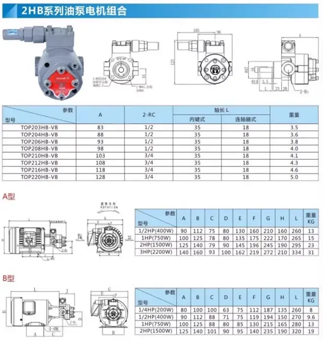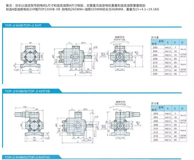 TOP-212HB-VB(VD) PT3/4 TOP-216HB-VB(VD) PT3/4 TOP-220HB-VB(VD) PT3/4